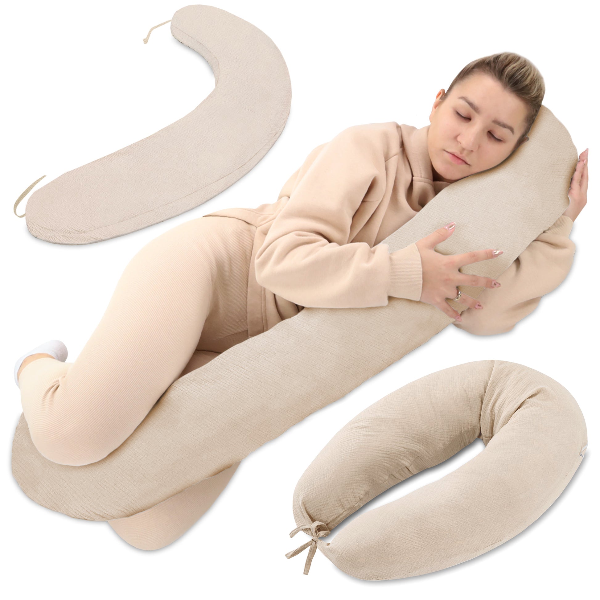 Ce coussin long est particulièrement précieux pour les femmes enceintes et les jeunes mamans qui allaitent. Il soutient le corps à chaque étape de la grossesse, aide à trouver une position de sommeil confortable et soulage la colonne vertébrale, le dos et le ventre.